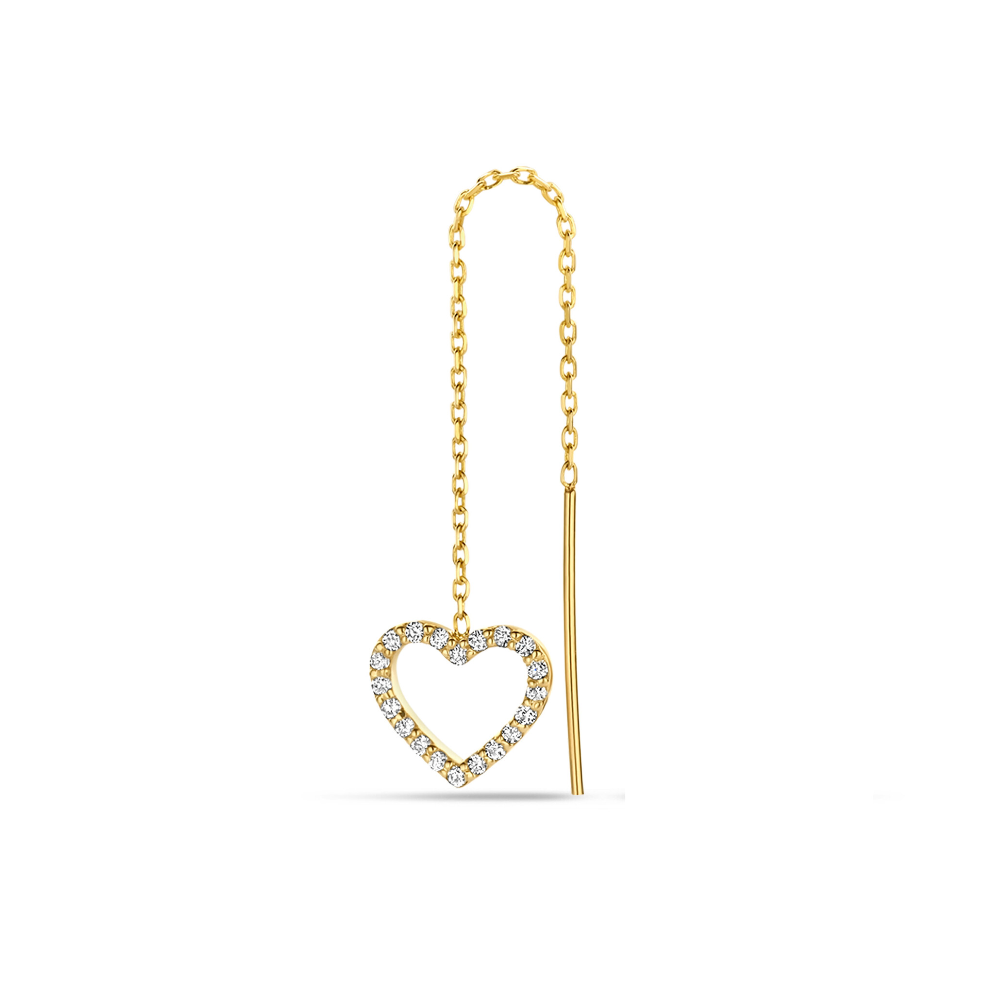The Iconic Heart Diamond Chain Earring is designed to elevate your style with a touch of luxury. It embodies the perfect combination of timeless elegance and contemporary flair. The earring is available in 14-carat yellow gold