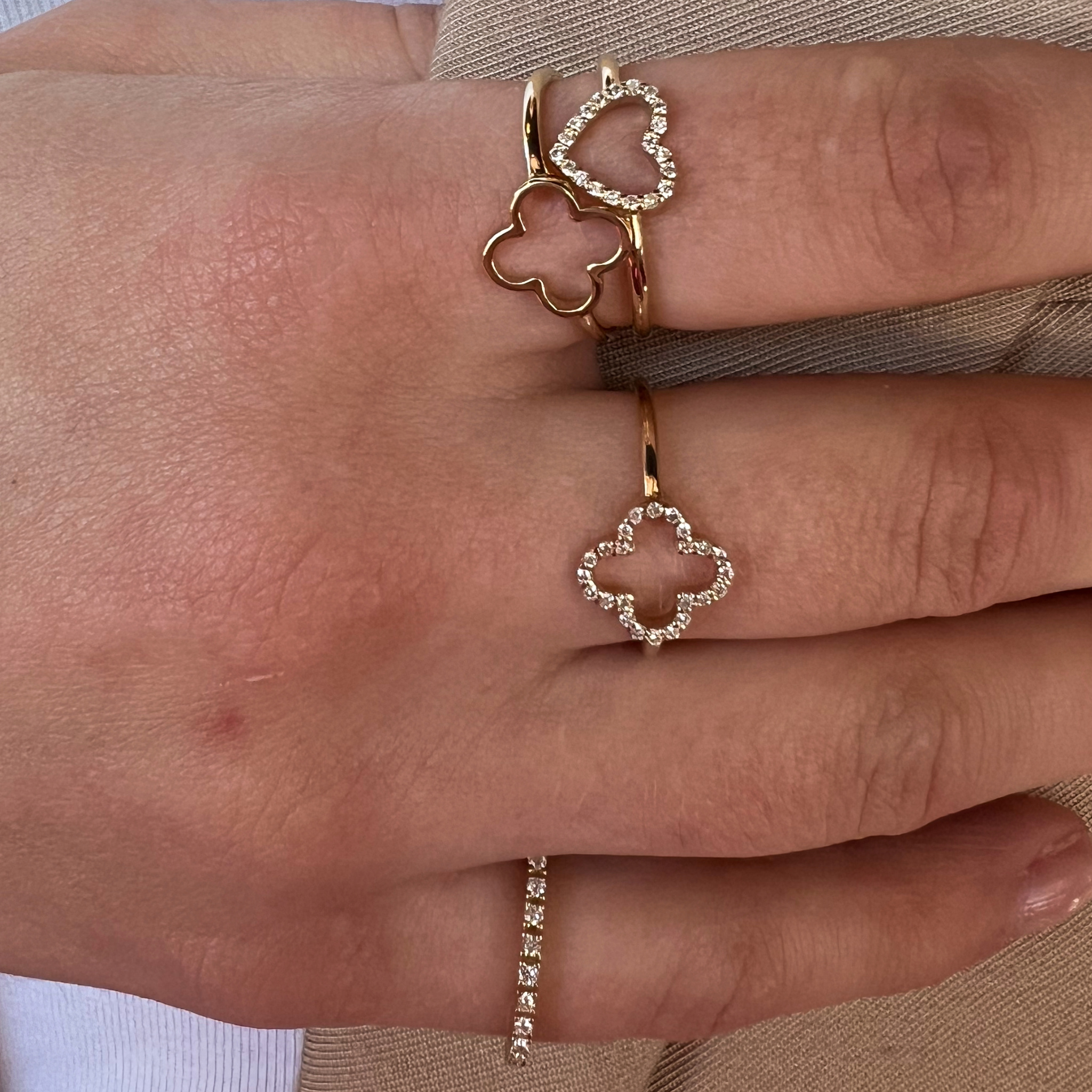 The Iconic Heart Diamond Ring is a beautiful 14-carat gold ring encrusted with white diamonds. This ring combines timeless elegance with a modern twist, making it perfect for any occasion. The subtle yet striking design adds a touch of sophistication to your look.