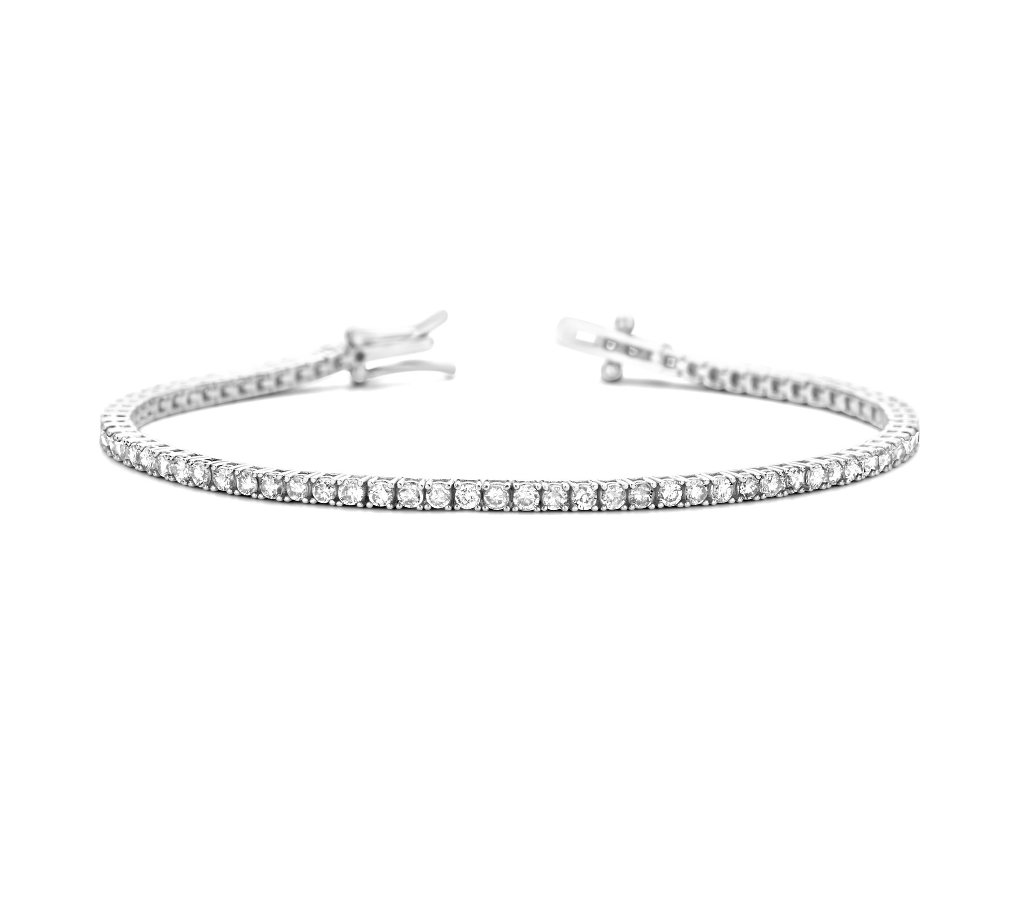 This Tennis Bracelet from the Just Diamond Collection is inlaid with the gemstone white diamond. The quality of the diamonds is VS and the colour is G. Each piece is unique and handmade by pure craftsmanship.