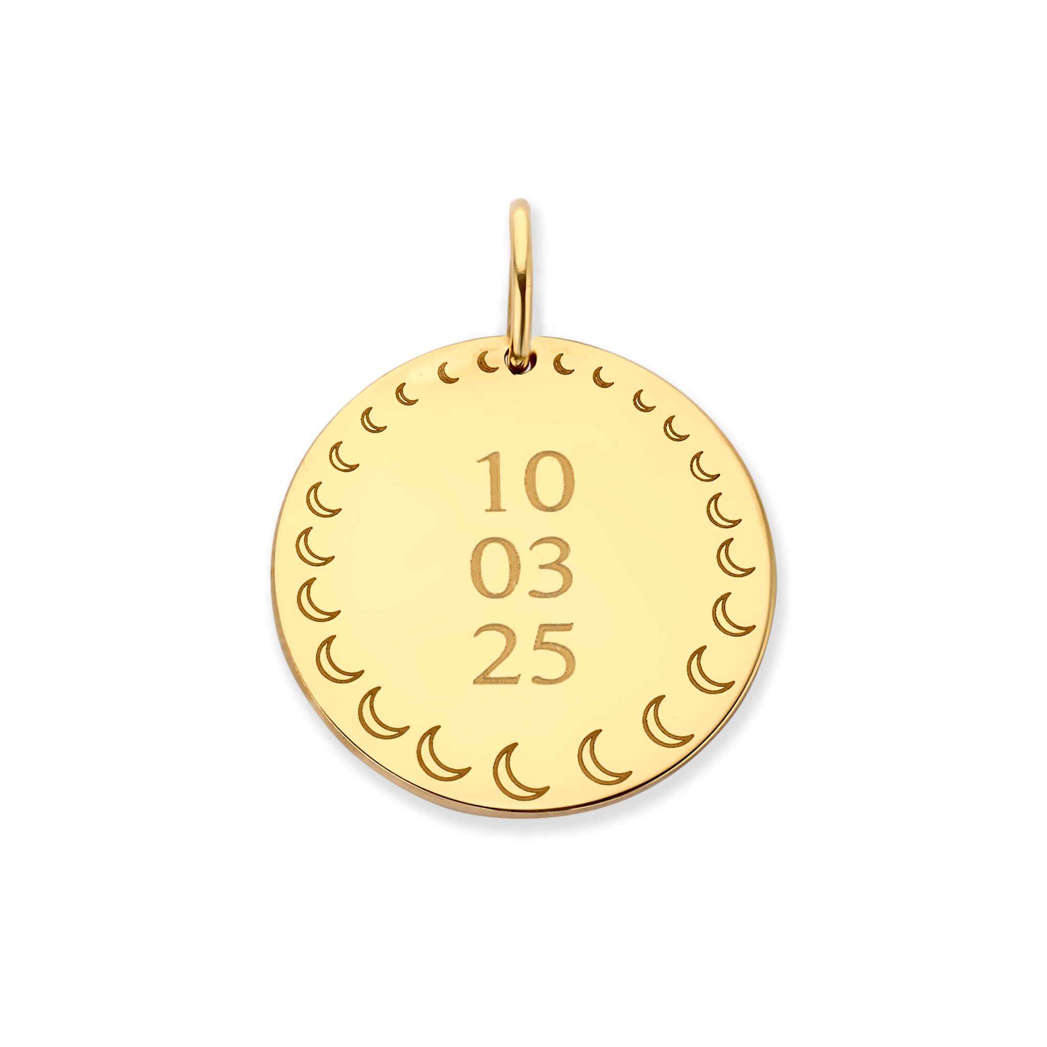 Complete your jewelry collection with the Universe Moon Charm, a timeless and elegant piece that can be fully personalized. Add your initials, a unique engraving, or even a fingerprint to make this charm truly your own. Carry a piece of the universe with you wherever you go.