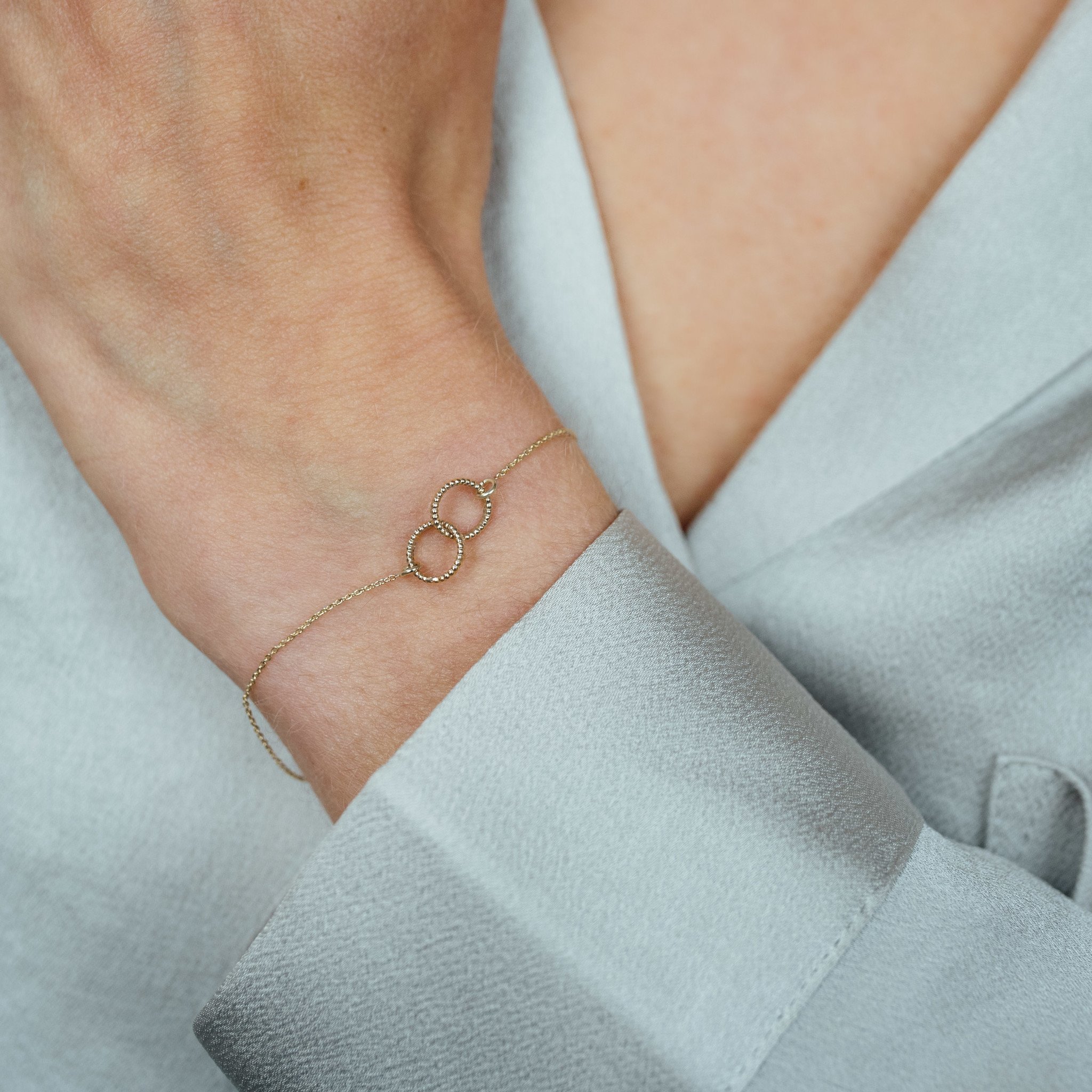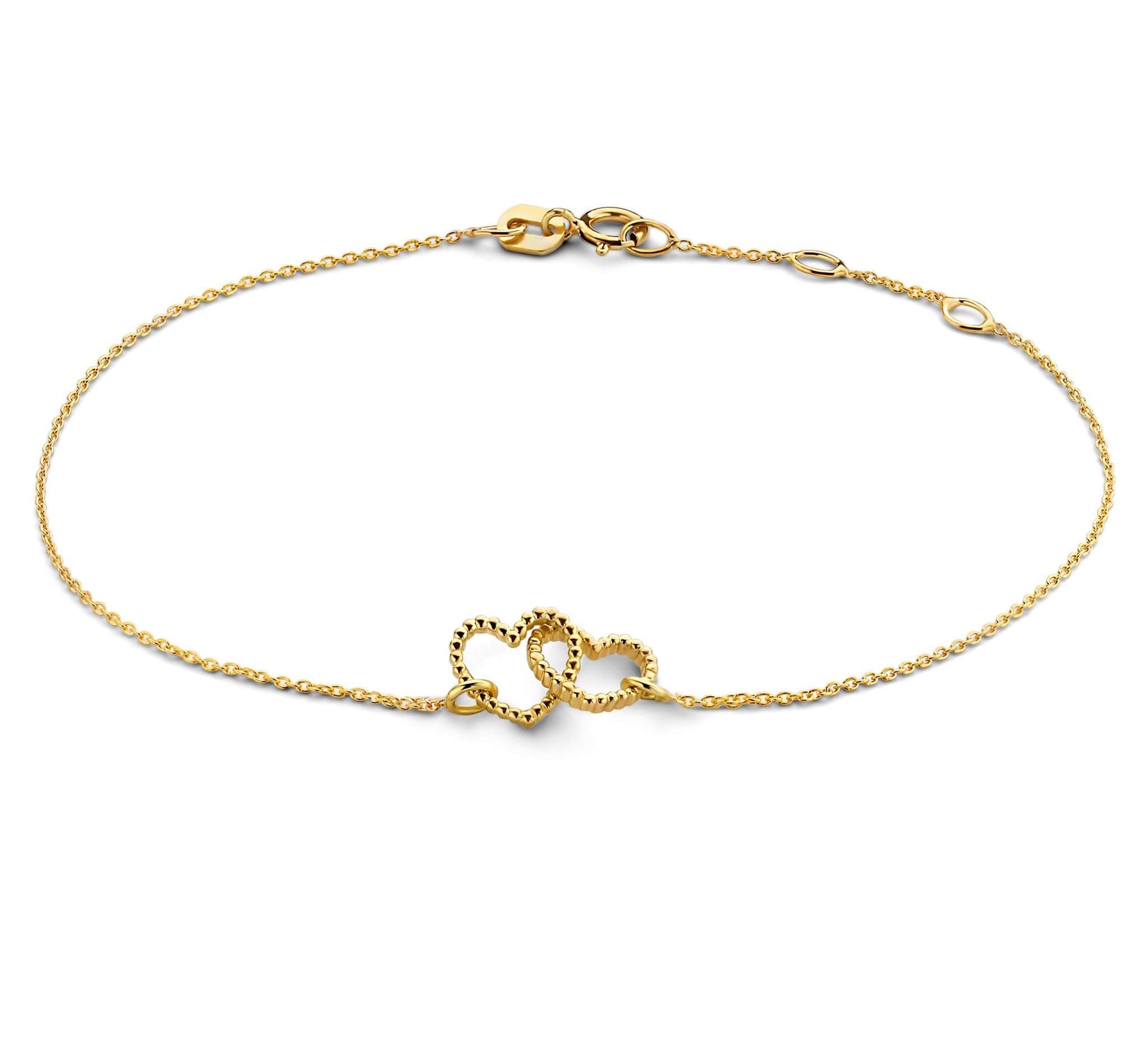 This Vintage Double Open Heart bracelet is feminine, elegant and timeless. The two intertwined hearts symbolise love, connection and personal strength. Made from 14-carat gold, only available in yellow gold.