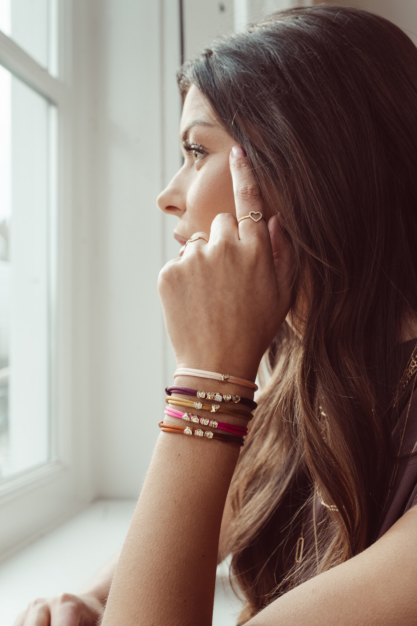 De Honey Bee Satijnkoord Armband is een tijdloos sieraad, perfect voor elke gelegenheid. Verzamel meerdere initialen en symbolen en draag ze samen aan één armband – of combineer ze met onze diamantvariant voor een extra sprankelende touch. Kies jouw eigen satijnkoordkleuren en maak de armband helemaal uniek.