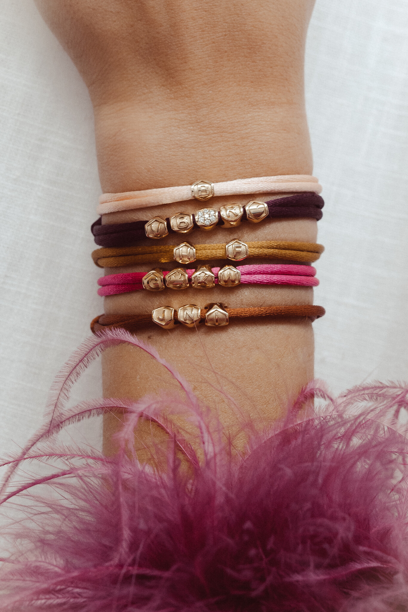 De 14 karaat gouden Honey Bee is een tijdloos sieraad dat je elke dag kunt dragen. Kies jouw initiaal of die van je dierbaren en spaar meerdere Honey Bee’s om een satijnkoord armband of ketting te creëren die jouw herinneringen vereeuwigd.
